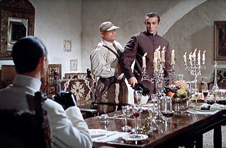 Bond invité par Dr No pour déguster un Dom Pérignon 1955, Bond, méfiant, répond qu’il préfère le millésime 1953. Copyright : D.R.